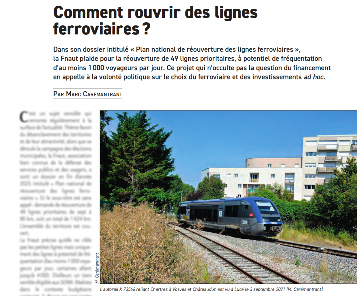 Marc Carémantrant, journaliste chez Rail Passion, revient sur le plan national de réouverture des lignes ferroviaires porté par la Fnaut, qui propose de relancer 49 liaisons à fort potentiel à travers le territoire. Un projet ambitieux visant à renforcer le maillage ferroviaire et à répondre aux enjeux de mobilité et d’attractivité des territoires.