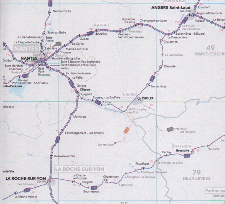 Après la réouverture de Cholet / les Herbiers, il restera entre Angers et les Sables d’Olonne une interruption ferroviaire de 40 km des Herbiers à la Roche, ou plutôt de 25 km entre les Herbiers et Chantonnay, suivant un ancien tracé en bonne part réutilisable, et desservant à mi-chemin Mouchamps ( 2 500 hab.).