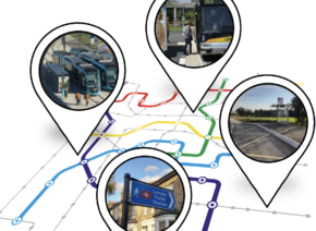 d’échange multimodaux. Un focus est consacré à l’adaptation des réseaux de bus pour faciliter le dernier tronçon d’usager. Au plan temporel, il s’agit d’améliorer significativement le service pour ces usagers (les durées de leur déplacement mixte bus et marche, le temps d’attente de correspondance, le renforcement de l’information conjointe sur les itinéraires piétons et le réseau TC).