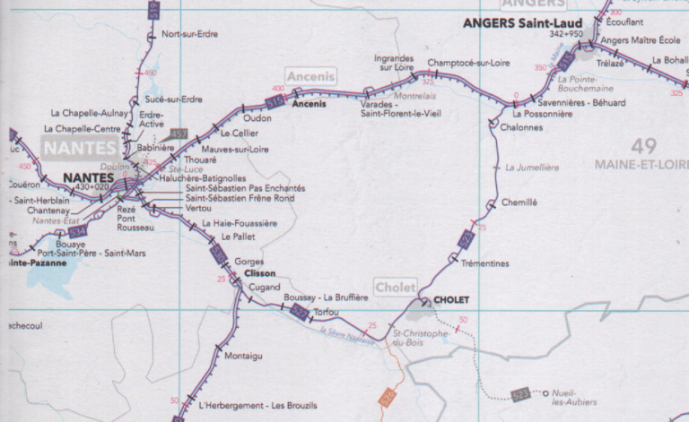 Une desserte moins sensible aux inondations Nantes / Clisson / Cholet / la Possonnière / Angers est possible en en coordonnant ou en soudant ou les dessertes Nantes / Cholet et Angers / Cholet, malgré les 15’ au moins nécessaires au rebroussement en gare de Cholet. Ce trajet Nantes / Angers en 1h40 serait nettement plus long qu’en TGV (40’) ou par les omnibus de la ligne actuelle Nantes / Angers (près d’une heure). Il est aussi à voie unique, avec une capacité plus limitée. Mais outre son rôle d’alternative de secours, la liaison par Cholet permettrait des liaisons utiles à ceux qui voyagent entre l’Anjou, la Vendée Nord et le Sud Est de Nantes (via Clisson et son tram-train).