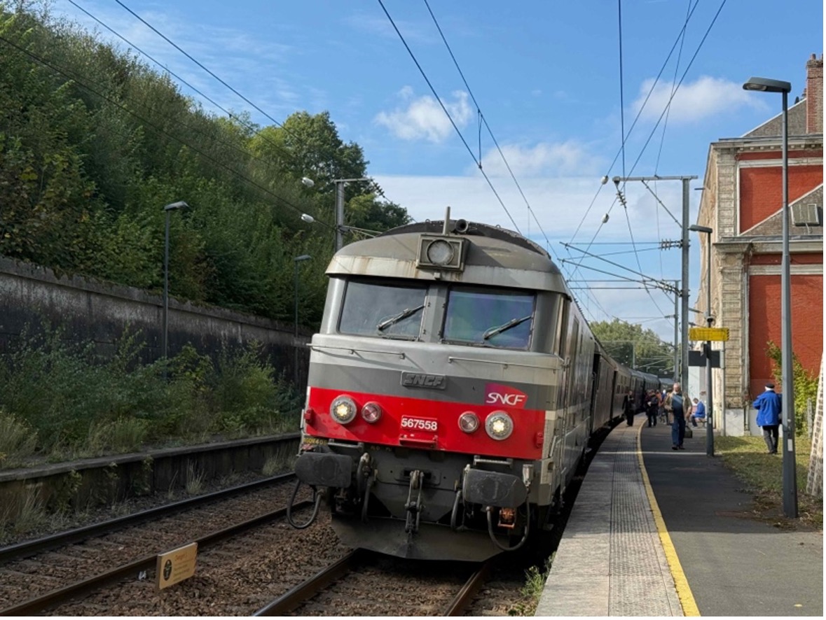 Ces trains ont circulé sous le numéro 801284 à l’aller et 801287 au retour. Le matériel roulant était composé de plusieurs voitures historiques du Pacific Vapeur Club basées à Sotteville, et de la BB 67558.